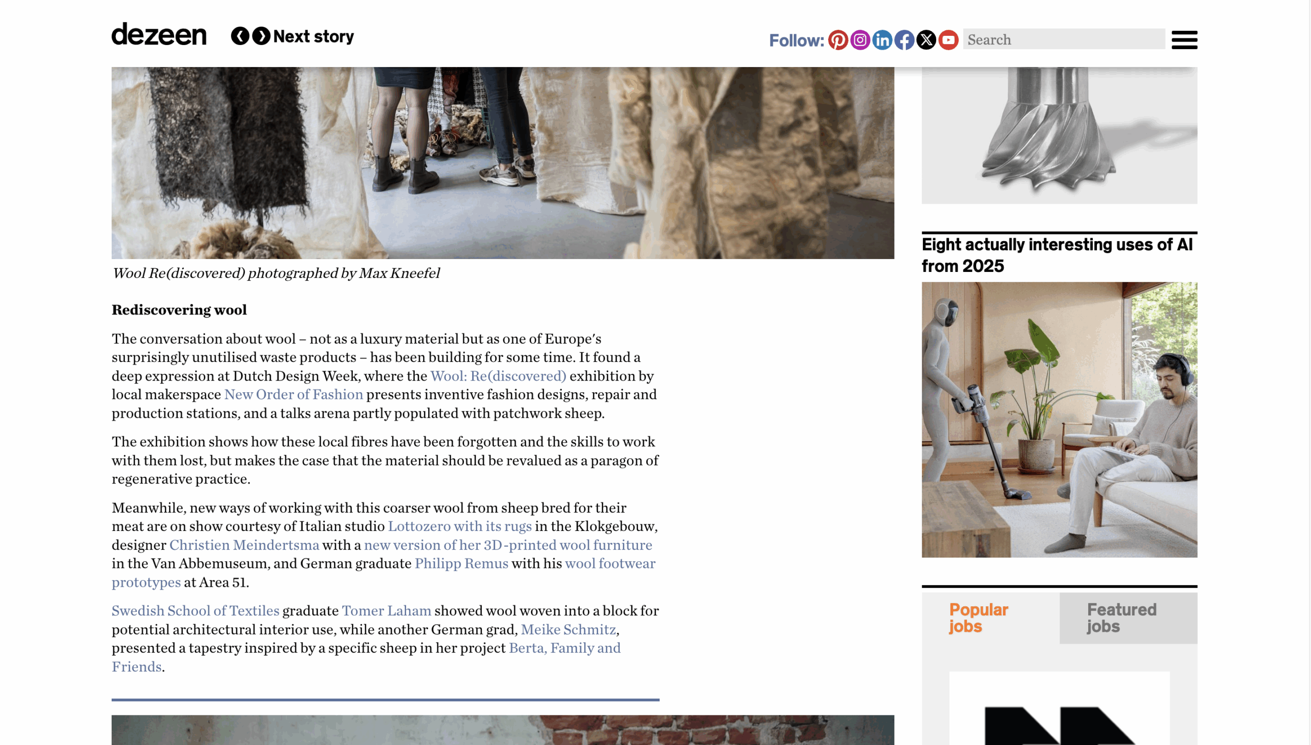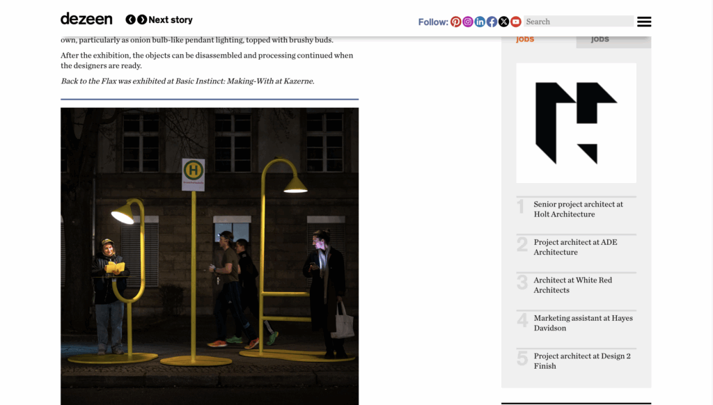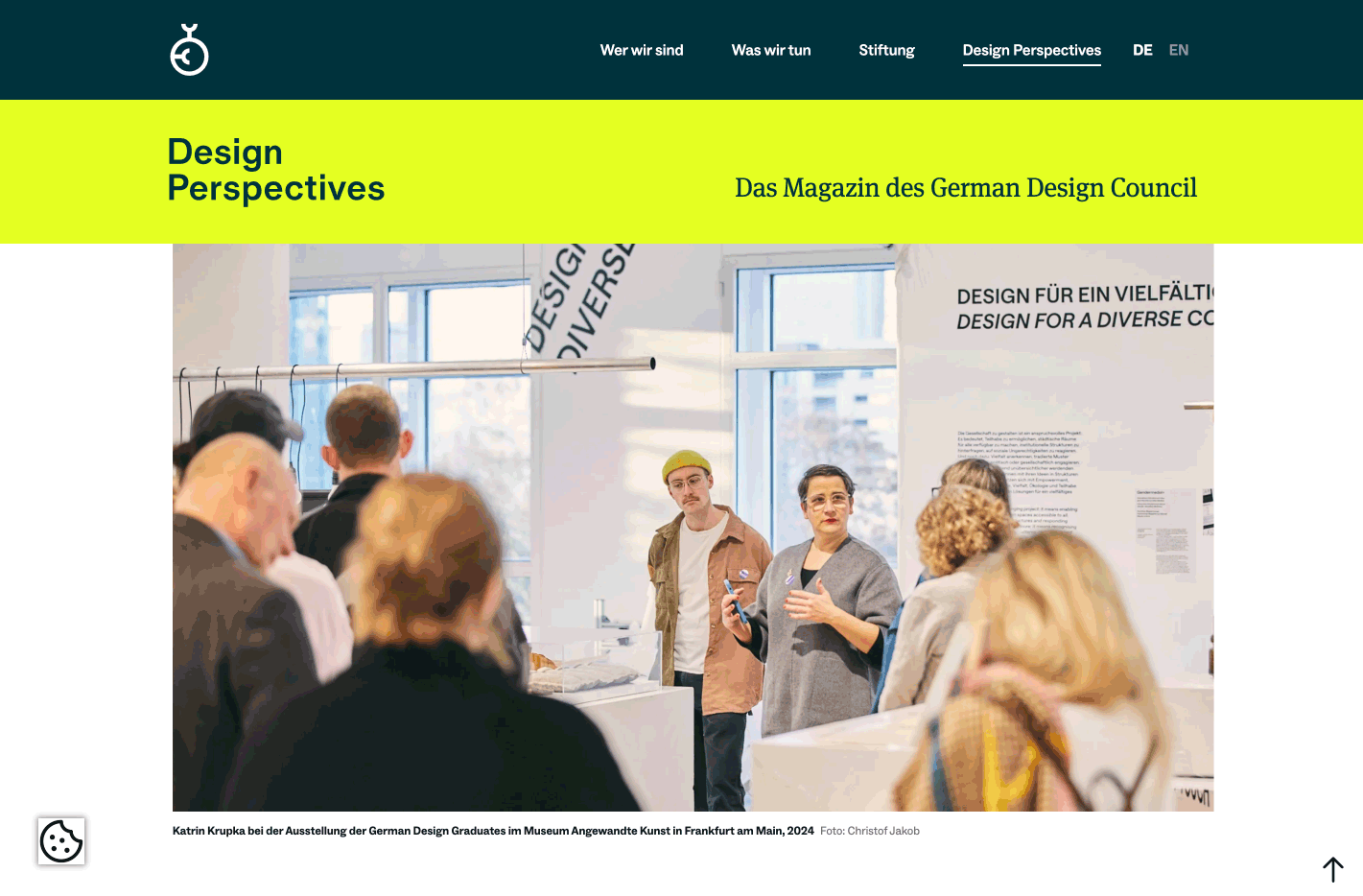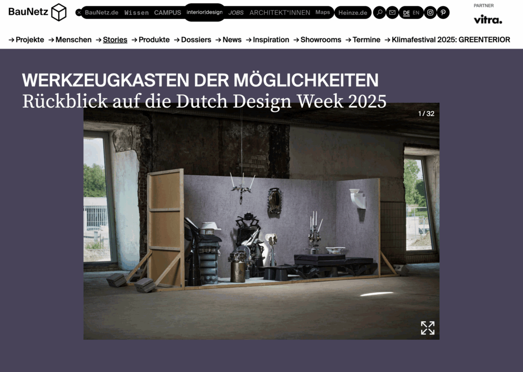 Publikationen 2025 Design Perspectives dezeen PAGE BauNetz Interior Design BauNetz 2024 ndion monopol hr2 Frankfurter Rundschau Journal Frankfurt KulturPort.De 2023 ndion archiproducts designboom md INTERIOR | DESIGN | ARCHITECTURE dezeen NDR Deutschlandfunk Kultur Hamburger Abendblatt Hans Sauer Stiftung Designer in Action Eyes & Ears of Europe formfaktor hamburg.de craft2eu RP online Mit Vergnügen Trendwelten 2019 – 2022